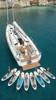 Erleben Sie ein einzigartiges Yoga-Segelboot-Erlebnis auf Mallorca an Bord der Oceanis 37.1. Segeln Sie entlang der kristallklaren Gewässer des Mittelmeers und genießen Sie eine geführte Yoga-Session an Deck, umgeben von Meeresbrise und endlosem Horizont.